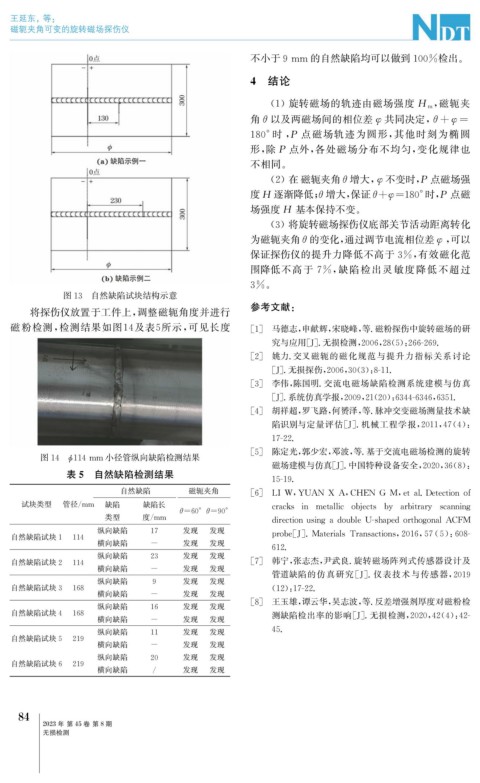 磁 粉检测, 检测结果如图 14 及表 5 所示, 可见长度 [ 1 ] 马德志, 申献辉, 宋晓峰, 等. 磁粉探伤中旋转磁场的研