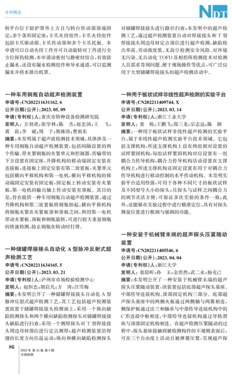 一种储罐焊接接头自动化 A 型脉冲反射式超 申请号: CN202211405546.6