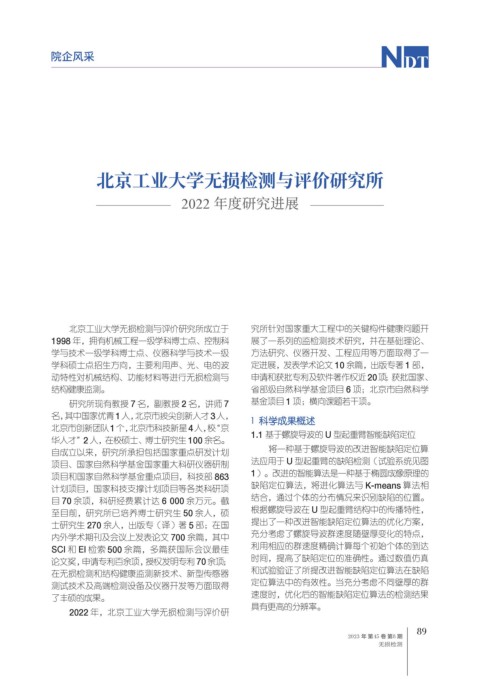 北京工业大学无损检测与评价研究所成立于 究所针对国家重大工程中的关键构件健康问题开