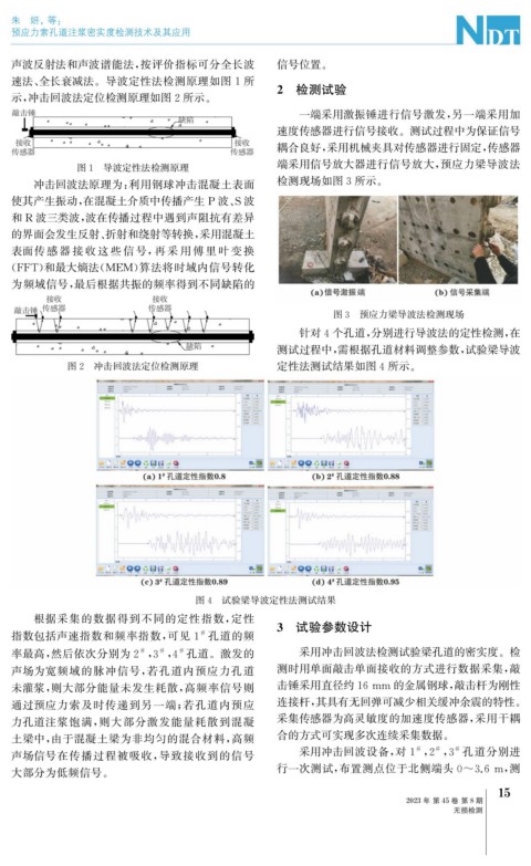 声场信号在传播过程被吸收, 导致接收到的信号 采用冲击回波设备, 对 1 , 2 , 3 孔道分别进
