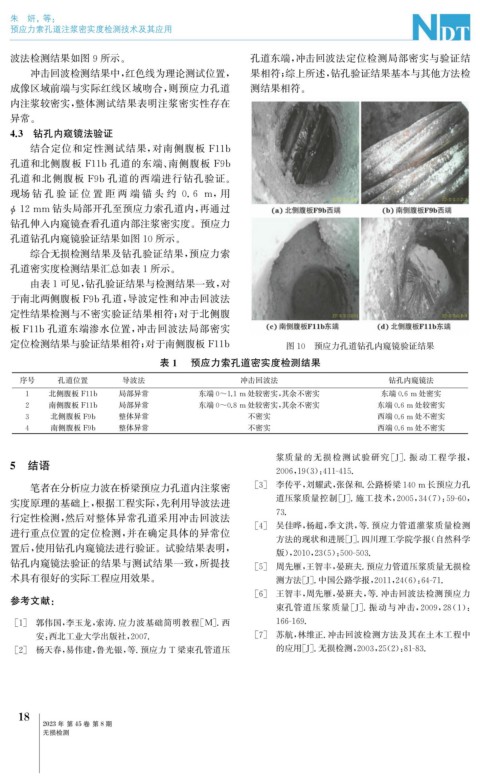 钻孔内窥镜法验证的结果与测试结果一致, 所提技 [ 5 ] 周先雁, 王智丰, 晏班夫. 预应力管道压浆质量无损检