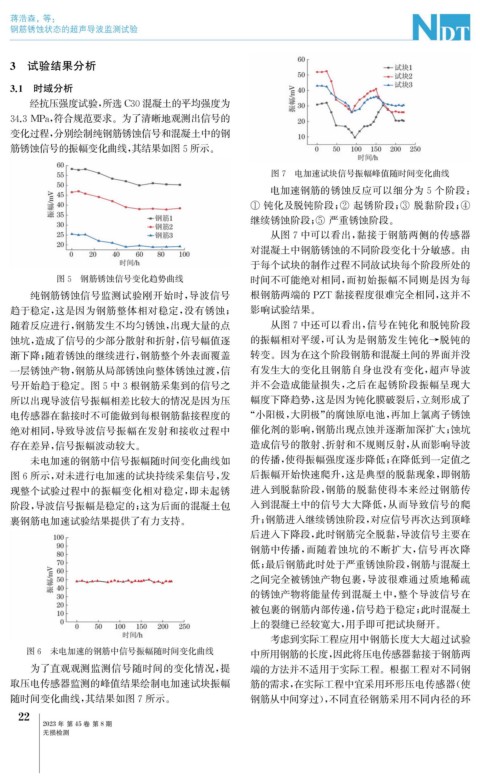 钢筋中传播, 而随着蚀坑的不断扩大, 信号再次降