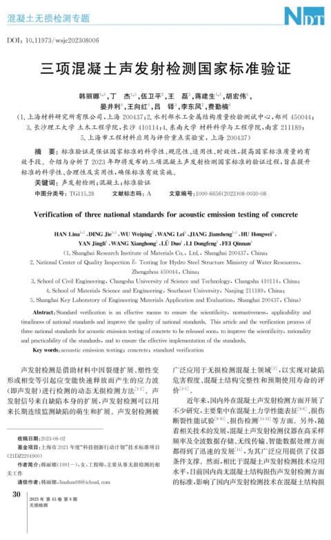 效手段。介绍与分析了2023年即将发布的三项混凝土声发射检测国家标准的验证过程, 旨在提升