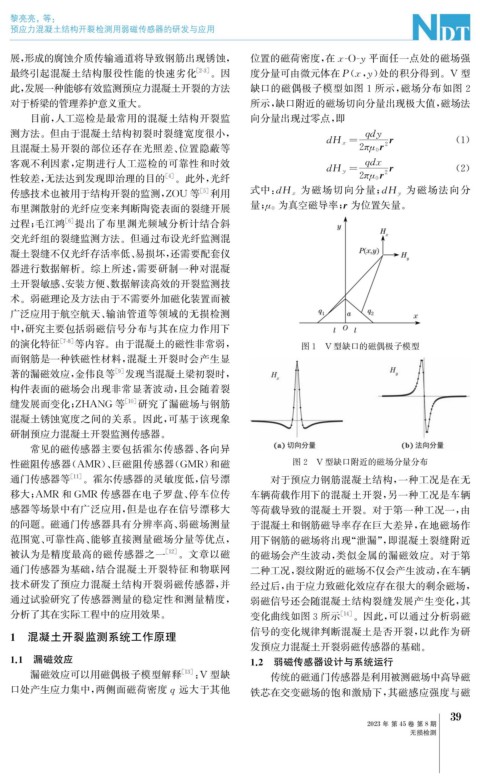 传感技术也被用于结构开裂的监测, ZOU 等 [ 5 ] 利用 式中: dH x 为磁场切向分量; dH y 为磁场法向分