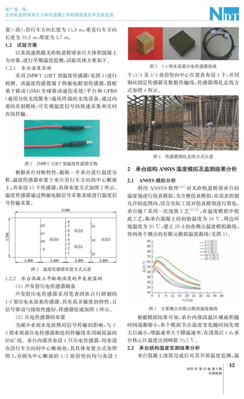 BNC线。承台内部共布设4只压电传感器, 均布设 台核心区温度达到峰值70.5℃ 。