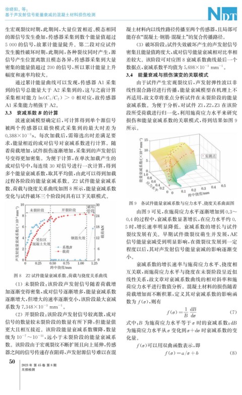 A1采集能力稍强于 A2 。 衰减系数。为便于分析, 对试件 Z1 , Z2 , Z3 在该阶