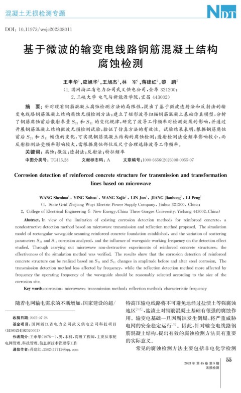 Corrosiondetectionofreinforcedconcretestructurefortransmissionandtransformation