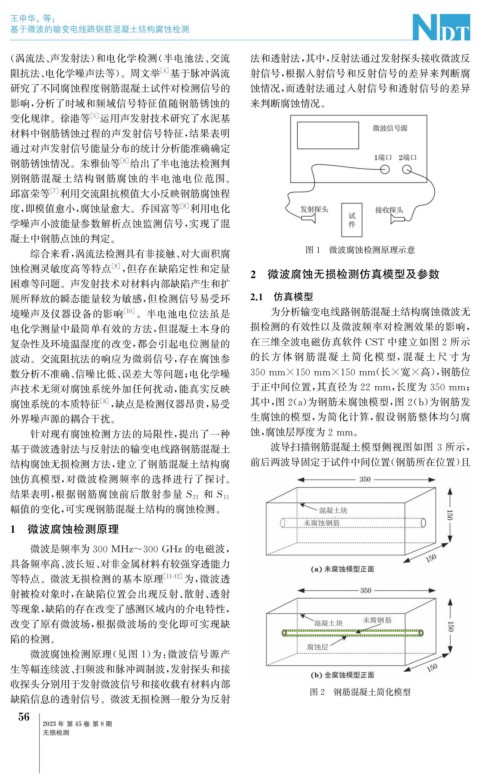 ( 涡流法、 声发射法) 和电化学检测( 半电池法、 交流 法和透射法, 其中, 反射法通过发射探头接收微波反