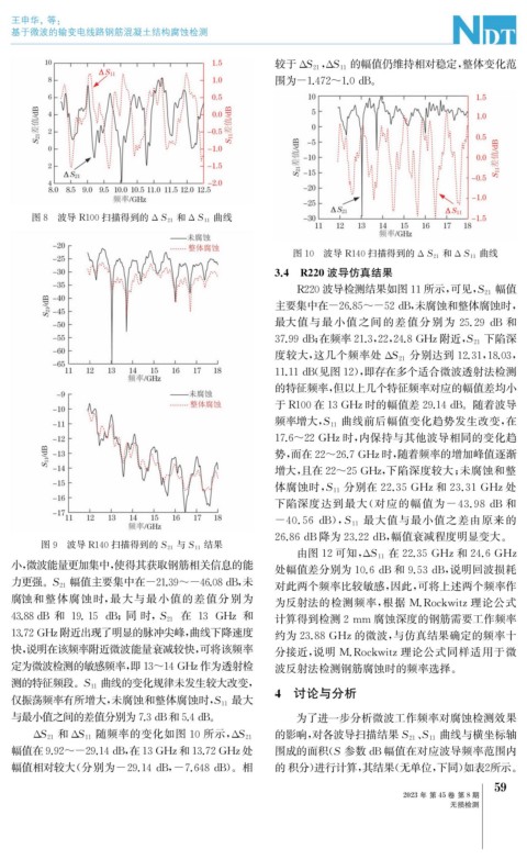 与最小值之间的差值分别为7.dB和5.dB 。 为了进一步分析微波工作频率对腐蚀检测效果