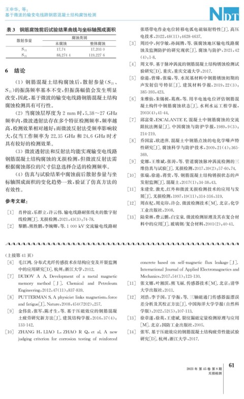 频率内, 微波透射法存在多个特征检测频率, 频率越 [ 7 ] 邱富荣, ESCALANTEE. 混凝土中钢筋腐蚀的交流