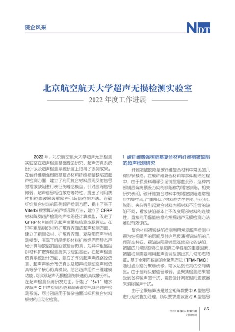 2022 年,北京航空航天大学超声无损检测 1 碳纤维增强树脂基复合材料纤维褶皱缺陷