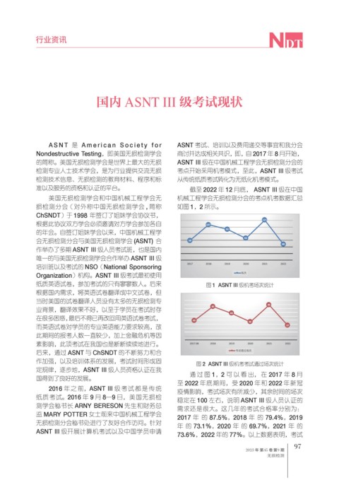 纸质英语试卷,参加考试的只有寥寥数人。后来 图 1 ASNT III 级机考场次统计