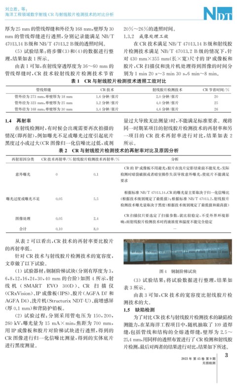 ( CRxVision )、 IP 成像板( IPS )、 胶片( AGFAD7和 由表3可知, CR 技术的宽容度比射线胶片检