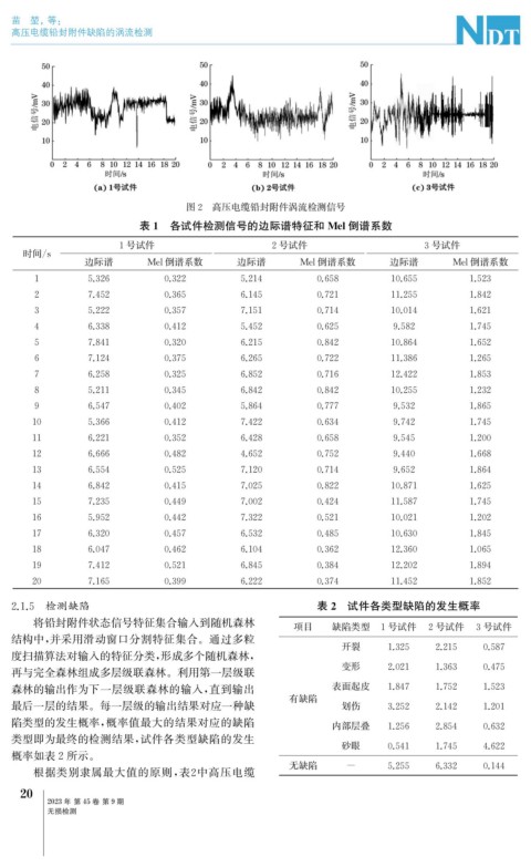 将铅封附件状态信号特征集合输入到随机森林 项目 缺陷类型 1号试件 2号试件 3号试件