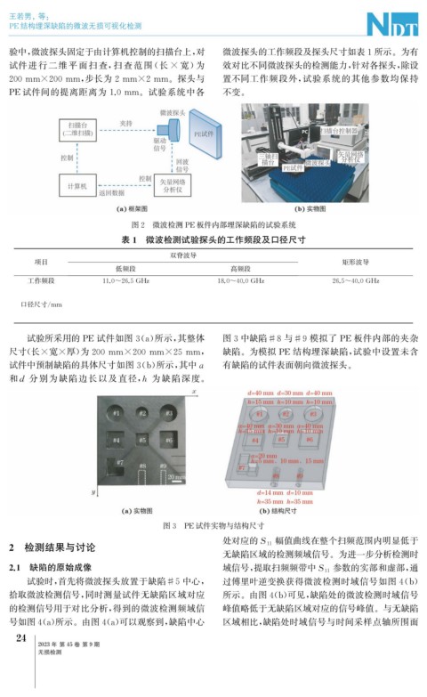 试件 进 行 二 维 平 面 扫 查, 扫 查 范 围 ( 长 × 宽) 为 效对比不同微波探头的检测能力, 针对各探头, 除设