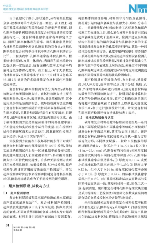 测方法不可替代的优越性。有多种无损检测方法可 准试块孔隙率必须足够小: ① 厚度为0.12in. 或更