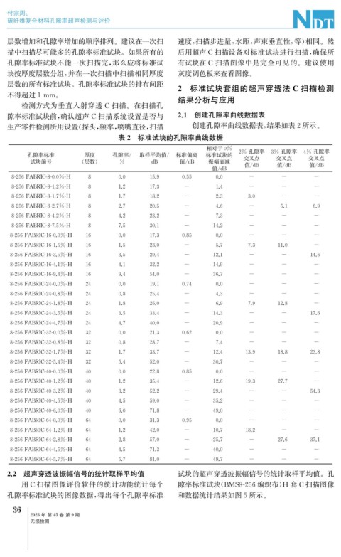 描中扫描尽可能多的孔隙率标准试块。如果所有的 后用超声 C扫描设备对标准试块进行扫描, 确保所