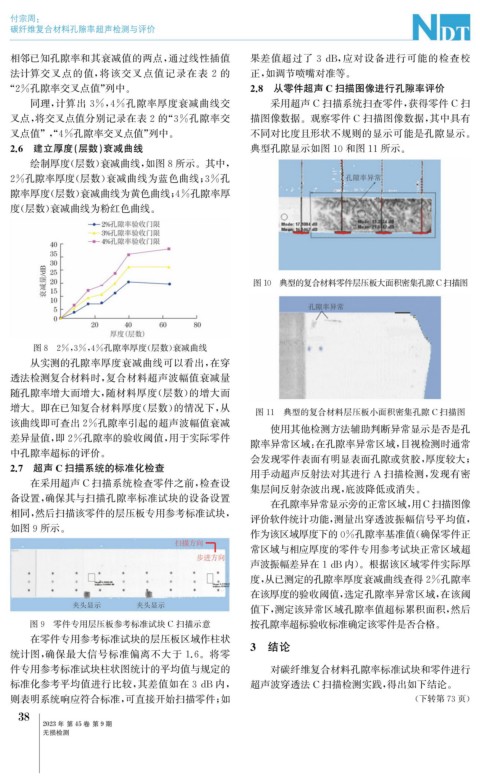 相邻已知孔隙率和其衰减值的两点, 通过线性插值 果差值超过了 3dB , 应对设备进行可能的检查校