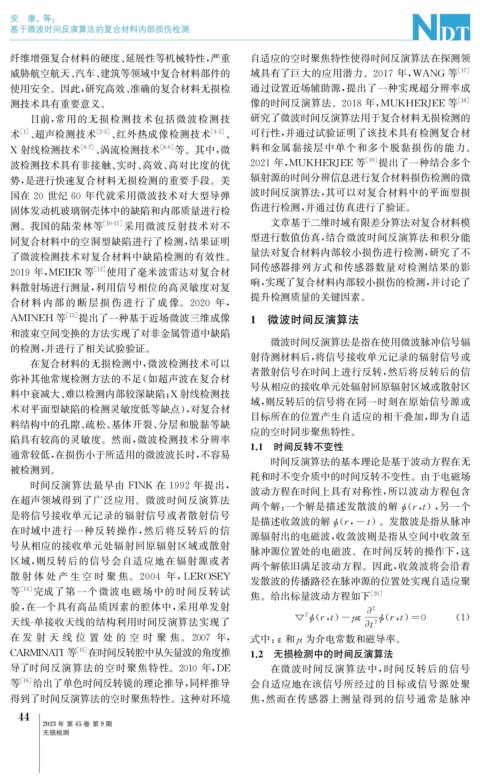 目前, 常用的无损检测技术包括微波检测技 研究了微波时间反演算法用于复合材料无损检测的
