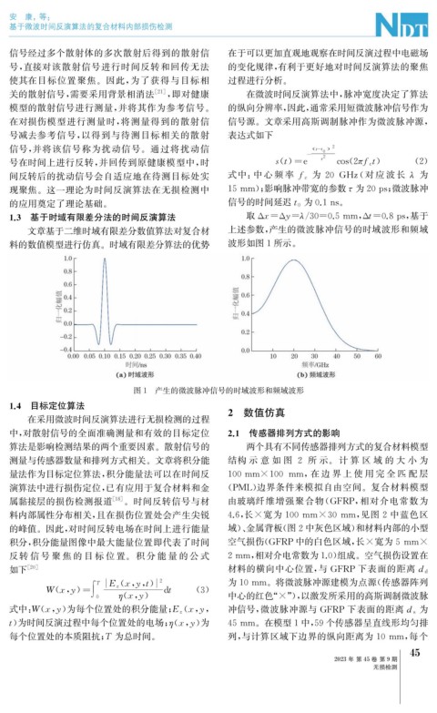 属黏接层的损伤检测报道 [ 18 ] 。时间反转信号与材 由玻璃纤维增强聚合物( GFRP , 相对介电常数为