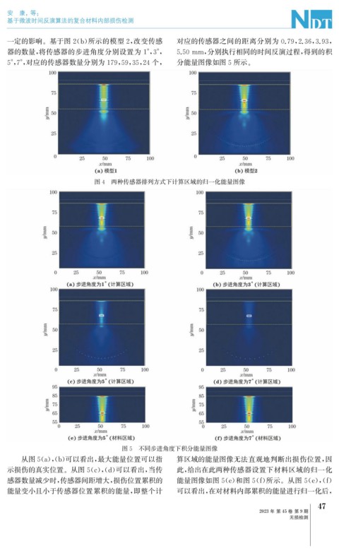从图5 ( a ),( b ) 可以看出, 最大能量位置可以指 算区域的能量图像无法直观地判断出损伤位置, 因