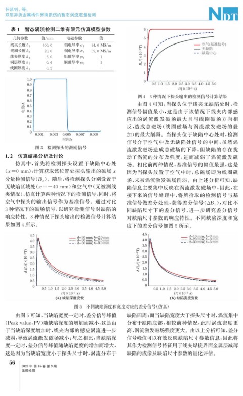 响应特性。 3种情况下探头输出的检测信号计算结 对缺陷尺寸参数的响应特性。不同缺陷深度和宽