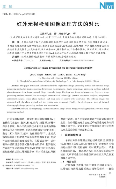 等多个领域。红外无损检测技术采用主动式热激励 图像处理方法。文章主要对红外图像处理方法的现