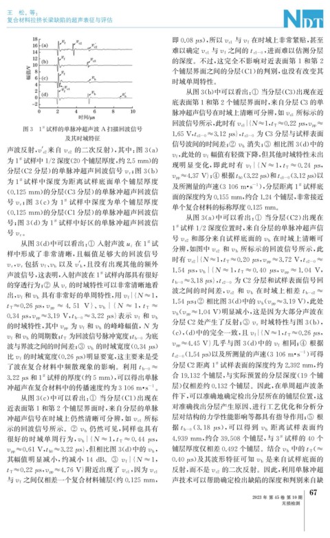 近表面第1和第2个铺层界面时, 来自分层的单脉 对准确找出分层产生原因、 进行工艺优化和分析分