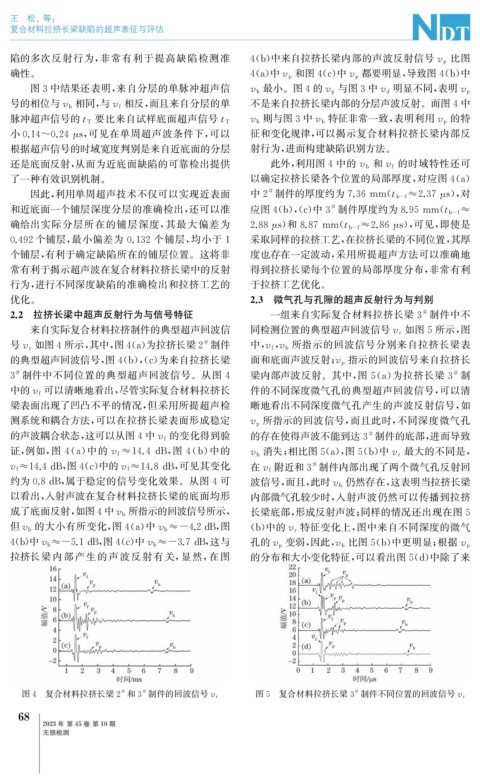 测系统和耦合方法, 可以在拉挤长梁表面形成稳定 v p 所指示的回波信号, 而且此时, 不同深度微气孔