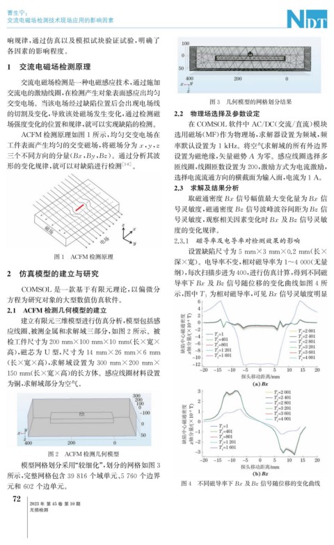 ACFM 检测原理如图1所示, 均匀交变电场在 选用磁场( MF ) 作为物理场, 求解器设置为频域, 频