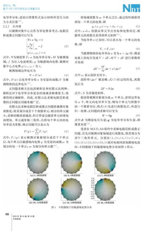 划分的每一个单元; m 为划分的单元数 [ 14 ] 。 时, 不同激励下的敏感场电势分布如图4所示。