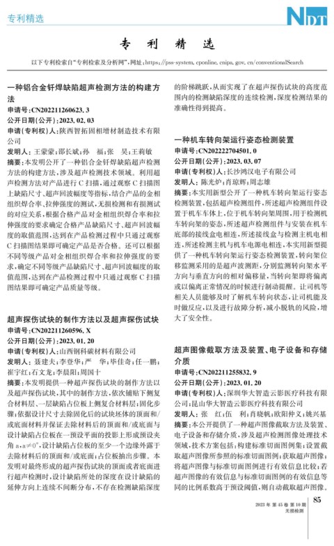 摘要: 本发明公开了一种铝合金钎焊缺陷超声检测 公开日期( 公开): 2023.03.07