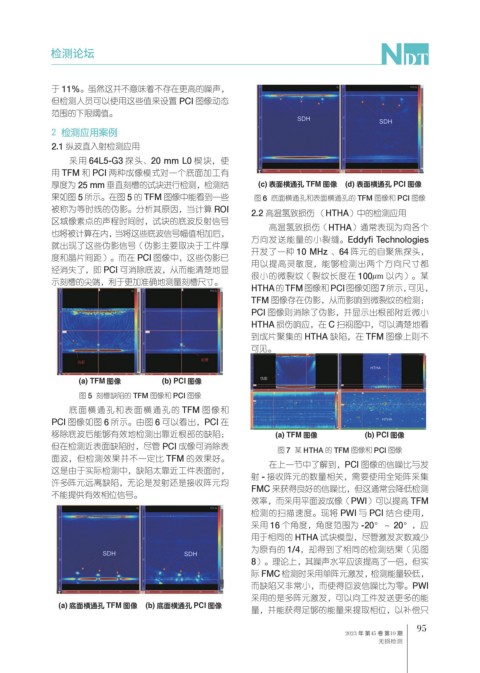 HTHA 的TFM 图像和PCI 图像如图7 所示,可见,