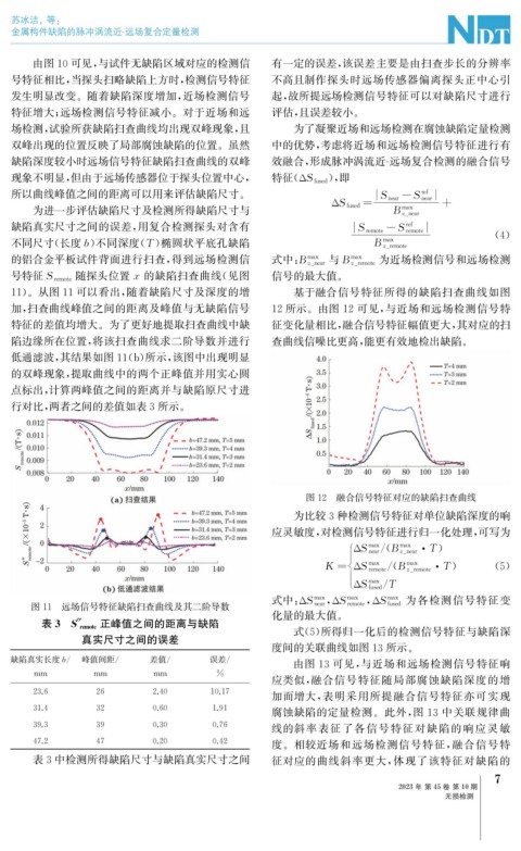 场检测, 试验所获缺陷扫查曲线均出现双峰现象, 且 为了凝聚近场和远场检测在腐蚀缺陷定量检测