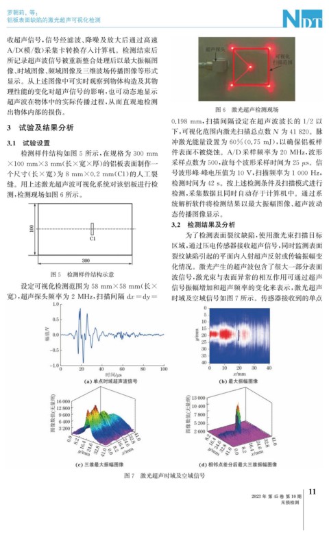 缝。用上述激光超声波可视化系统对该铝板进行检 检测时间为42s 。按上述检测条件及扫描模式进行