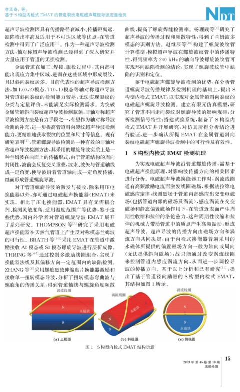 称超声导波检测方法, 其采用的螺旋导波实质上是一 1 S构型内检式 EMAT 检测机理