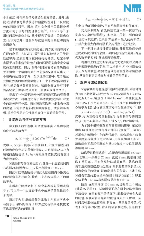 用时间反转定位方法, 集中研究了管道中的损伤位 字典 D M , 随后对信号 y s 和字典中的每一列的向量