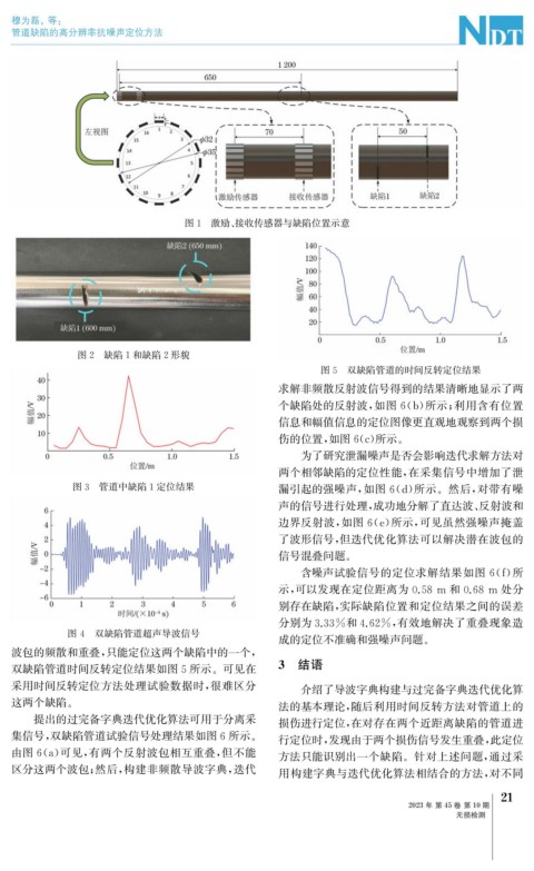双缺陷管道时间反转定位结果如图5所示。可见在 3 结语