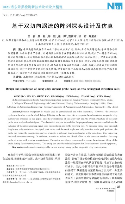 关键词: 无损检测; 涡流检测; 阵列探头; 切向涡流探头