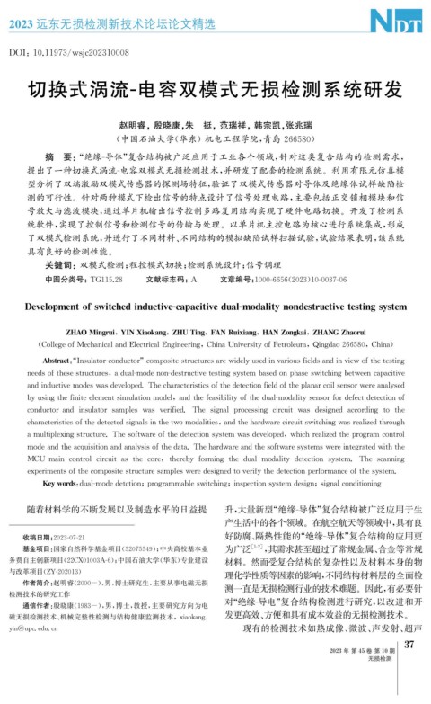 提出了一种切换式涡流 - 电容双模式无损检测技术, 并研发了配套的检测系统。利用有限元仿真模