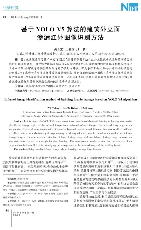 Infraredima g eidentificationmethodofbuildin g facadeleaka g ebasedonYOLOV5al g orithm