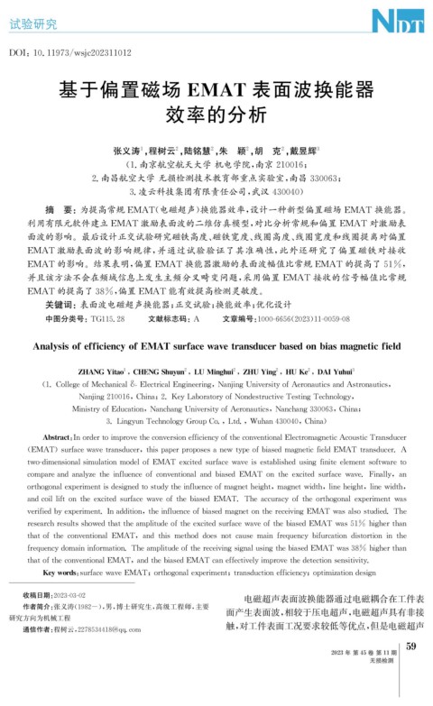 researchresultsshowedthattheam p litudeoftheexcitedsurfacewaveofthebiasedEMATwas51% hi g herthan