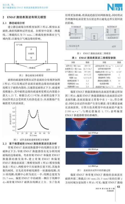 度模越小, 其中磁铁边缘的磁通密度模比内部最小 偏置 EMAT 换能器激励的表面波传播过程如