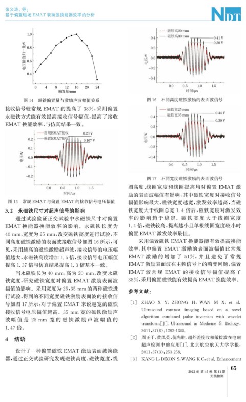 号如图17所示, 对于偏置 EMAT 来说越宽的磁铁 [ 1 ] ZHAO X Y , ZHONG H , WAN M X , et al.