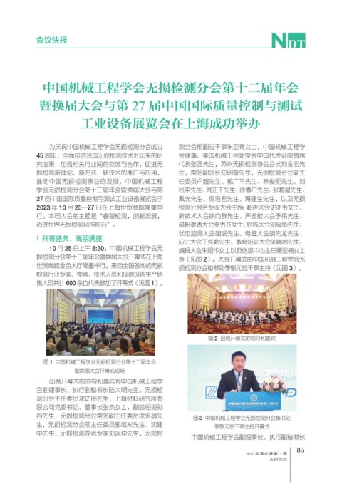 损检测分会第十二届年会暨换届大会开幕式在上海 等(见图 2)。大会开幕式由中国机械工程学会无