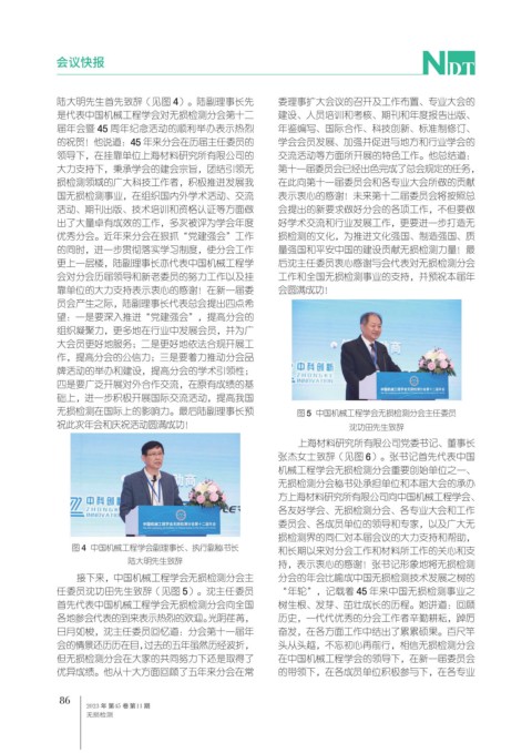 任委员沈功田先生致辞(见图 5)。沈主任委员 “年轮”,记载着 45 年来中国无损检测事业之