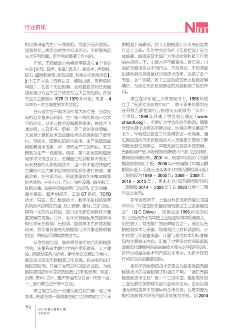 金属构件应力集中区域的早期损伤进行快速、准 检测年鉴》,目前已出版 3 本《中国无损检测年鉴》