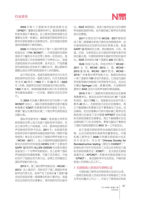声发射组织和学术会议。2011 年,由我国无损 由于我国无损检测学会卓越的国际交流历