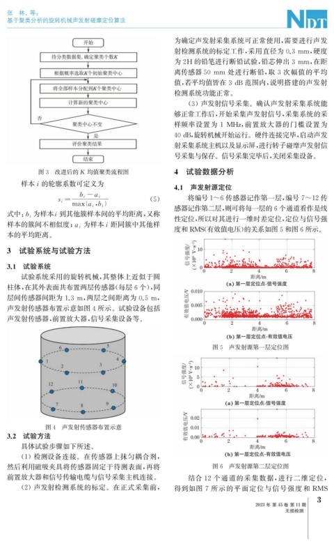 ( 2 )声发射检测系统的标定。在正式采集前, 得到如图 7 所示的平面定位与信号强度和 RMS