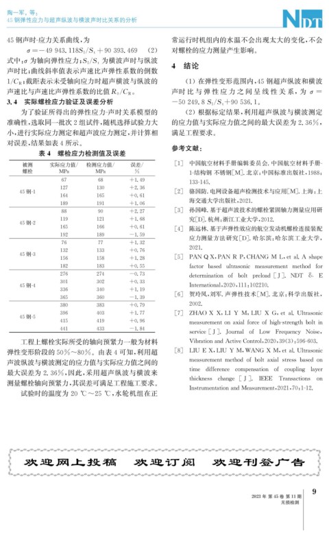 弹性变形阶段的50%~80% 。由表4可知, 利用超 [ 8 ] LIU EX , LIU Y M , WANG X M , etal.Ultrasonic